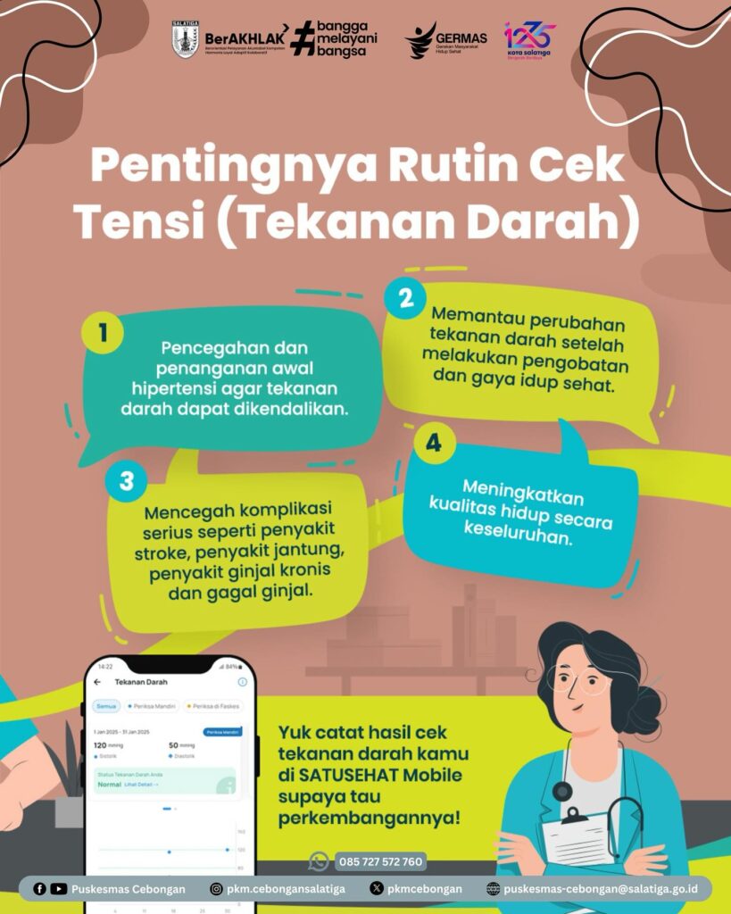 Dan jangan lupa, catat tekanan darahmu secara rutin di aplikasi SATUSEHAT Mobile biar bisa pantau terus perkembangannya.
