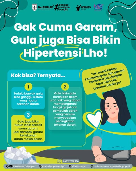 Yuk, mulai batasi konsumsi garam dan gula harian dari sekarang! Gula, Empat sendok makan sehari. Garam satu sendok teh sehari. Sadar dan bijak ya mengonsumsi gula dan garam.