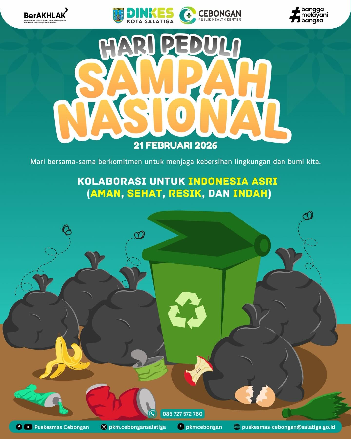 Sebagai garda terdepan pelayanan kesehatan, Puskesmas mengajak seluruh masyarakat untuk bersama-sama menjaga kebersihan lingkungan. Pengelolaan sampah yang baik adalah langkah nyata menciptakan lingkungan yang sehat, mencegah penyakit, dan mewujudkan Indonesia yang Aman, Sehat, Resik, dan Indah.