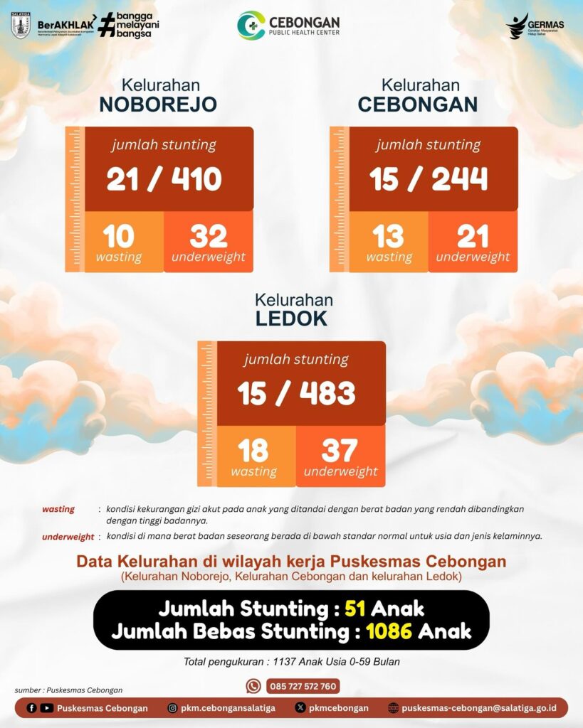 Berikut kami sampaikan informasi Data jumlah stunting bulan September 2025 di wilayah kerja Puskesmas Cebongan.