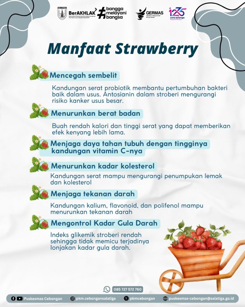 Indeks glikemik stroberi rendah sehingga tidak memicu terjadinya lonjakan kadar gula darah.