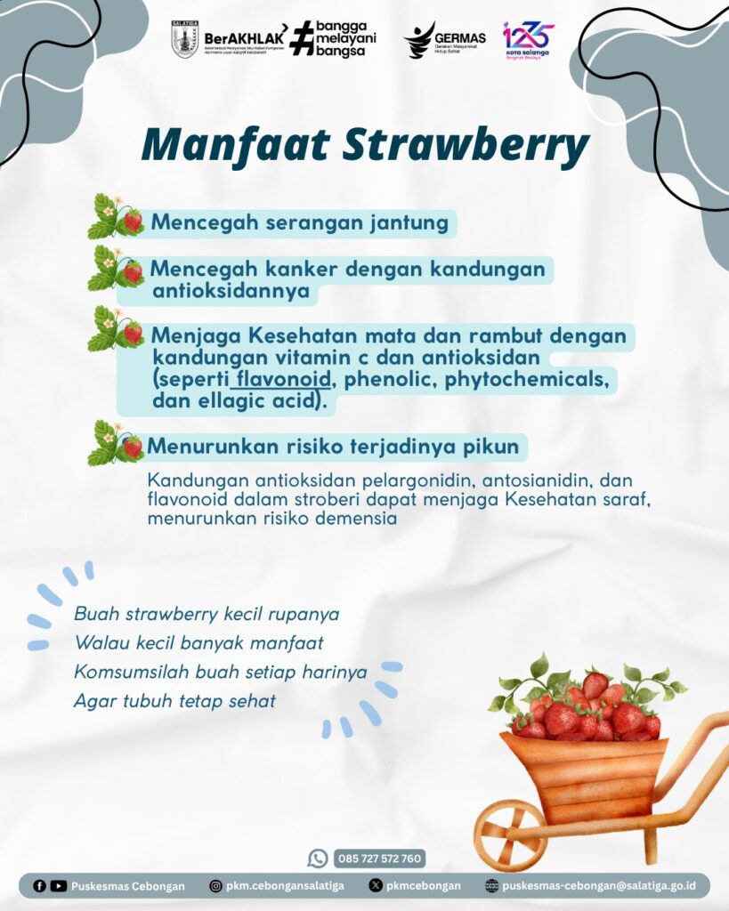 Kandungan antioksidan pelargonidin, antosianidin, dan flavonoid dalam stroberi dapat menjaga Kesehatan saraf, menurunkan risiko demensia