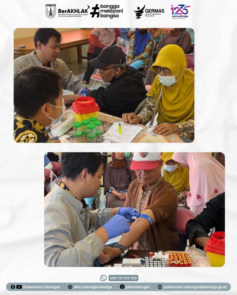 Selanjutnya dilakukan pemeriksaan kesehatan berupa pengukuran Tekanan Darah (TD), Berat Badan (BB) dan beberapa tes laboratorium penunjang lainnya yang disesuaikan dengan kebutuhan bekerjasama dengan Laboratorium Prodia Salatiga.