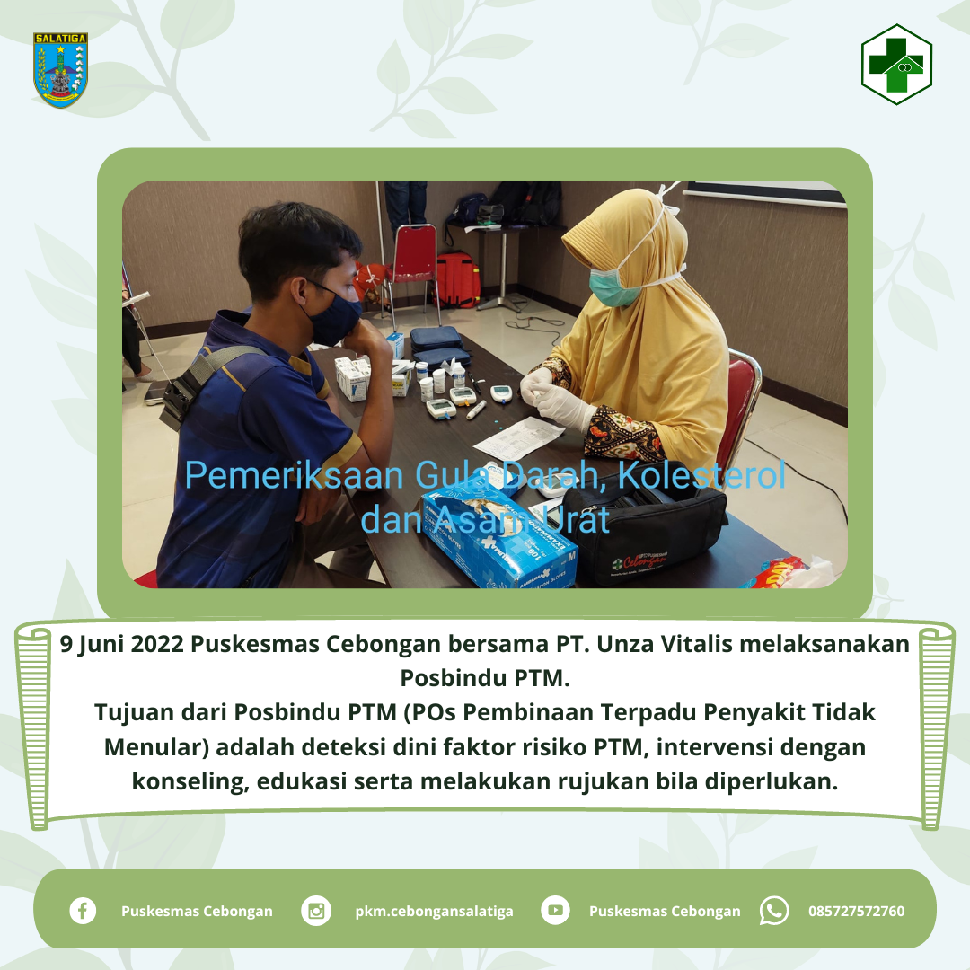 9 Juni 2022 Puskesmas Cebongan bersama PT. Unza Vitalis melaksanakan Posbindu PTM.