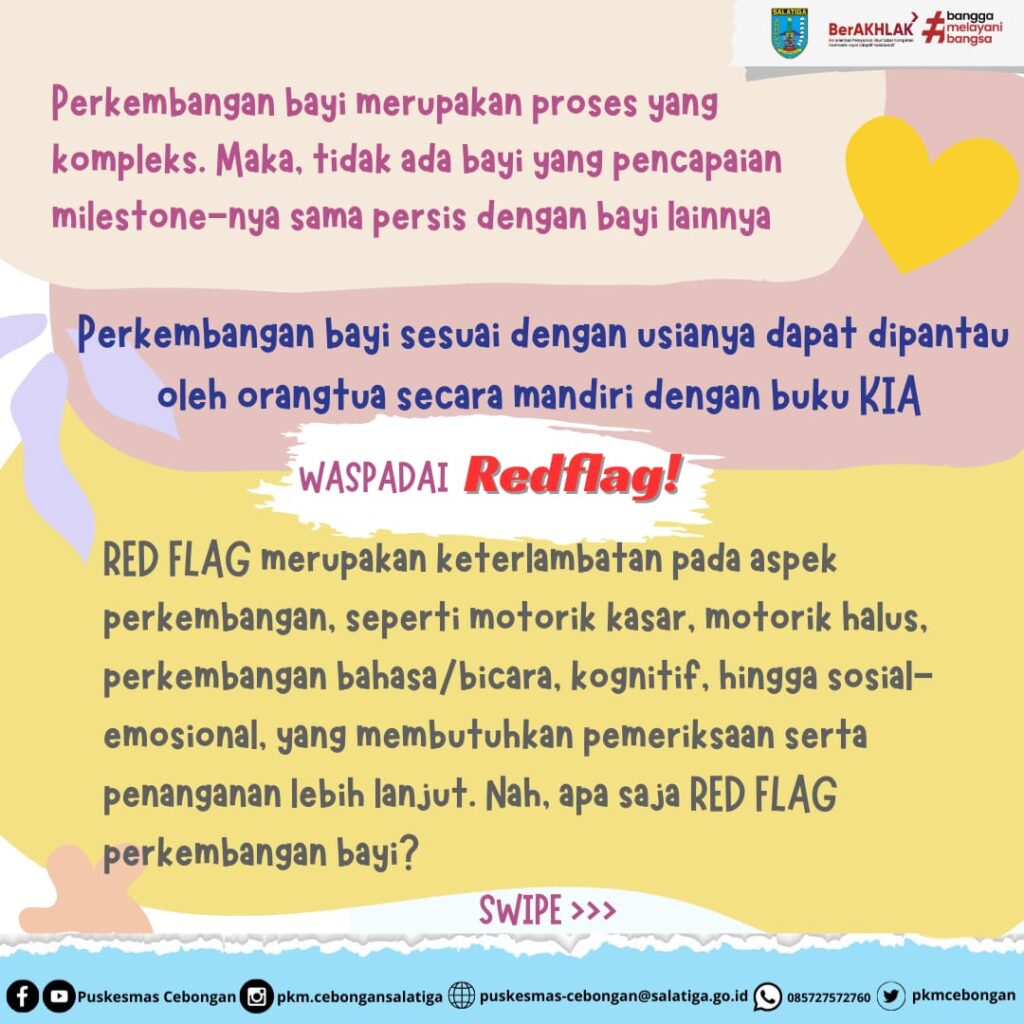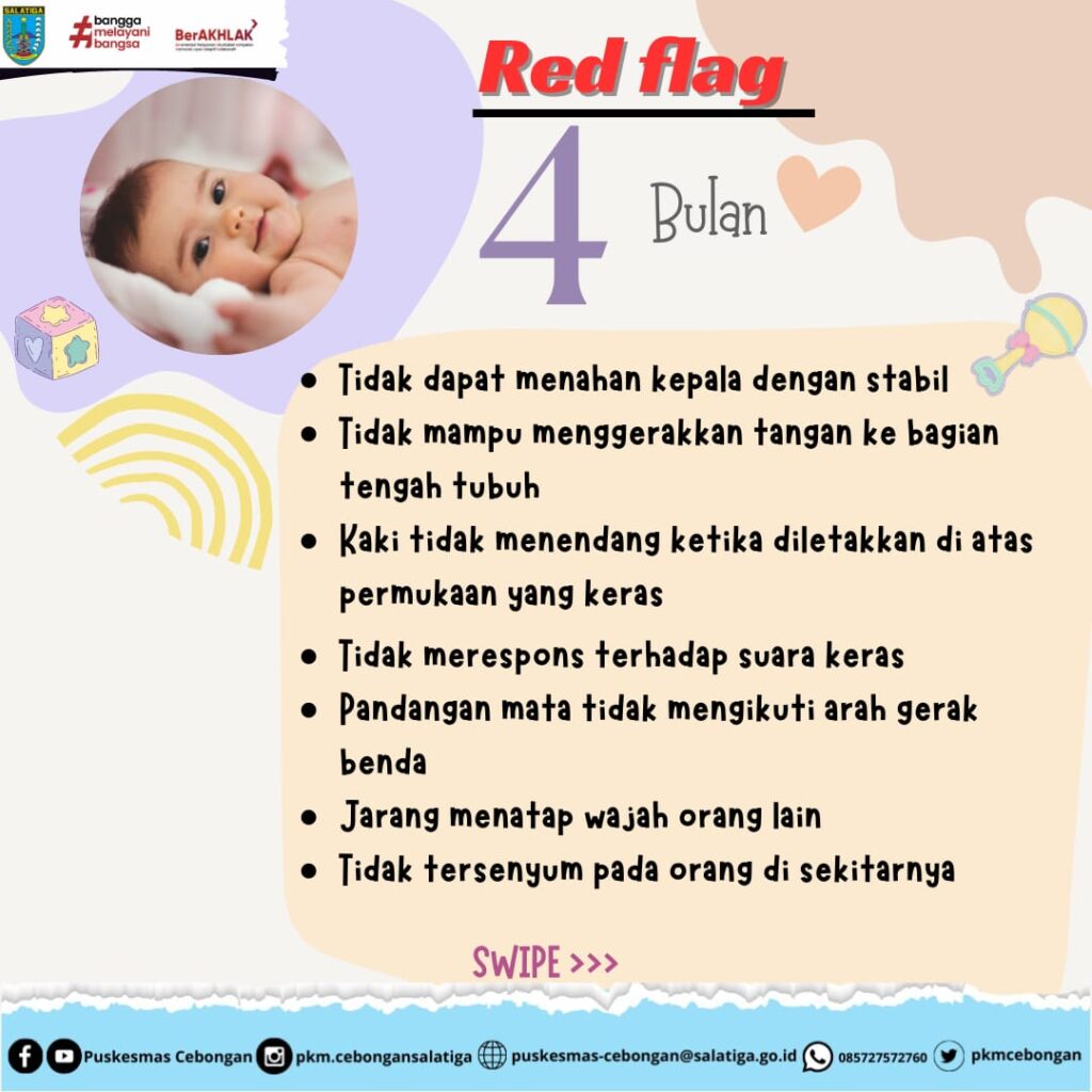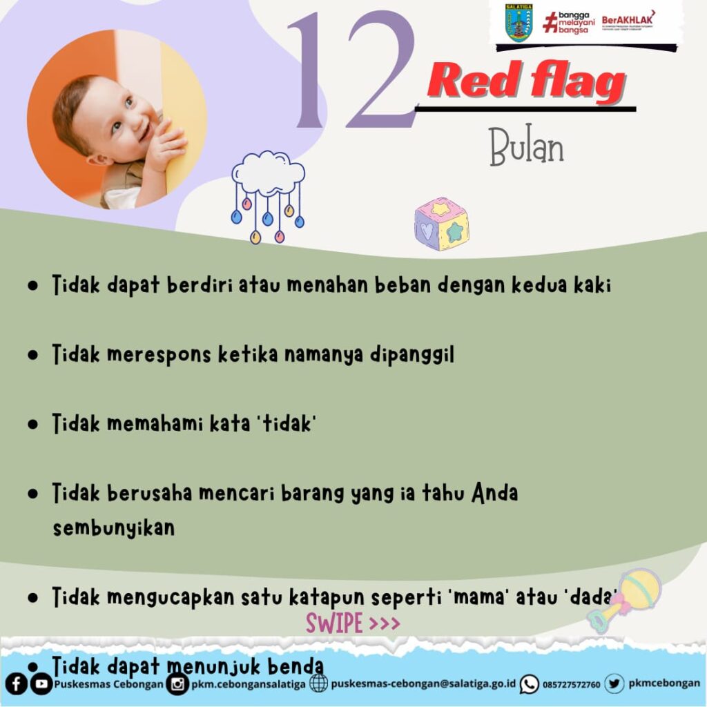 Red Flag merupakan keterlambatan pada aspek perkembangan seperti motorik kasar, motorik halus, perkembangan bahasa/bicara, kognitif, hingga sosial-emosional, yang membutuhkan pemeriksaan serta penanganan lebih lanjut.