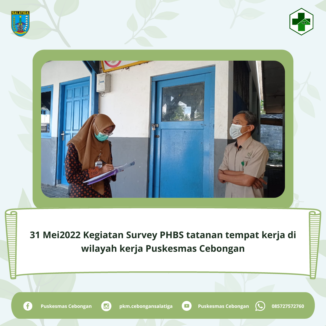 31 Mei 2022 kegiatan survey PHBS tatanan tempat kerja di wilayah kerja Puskesmas Cebongan.